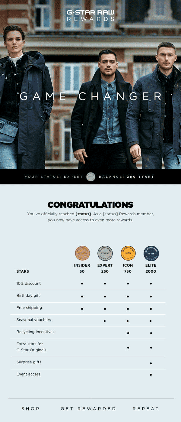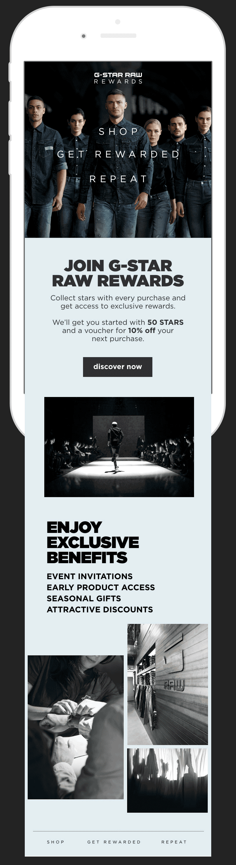 For the launch of the new G-Star Rewards loyalty program, I developed the visual look and feel of the entire experience.